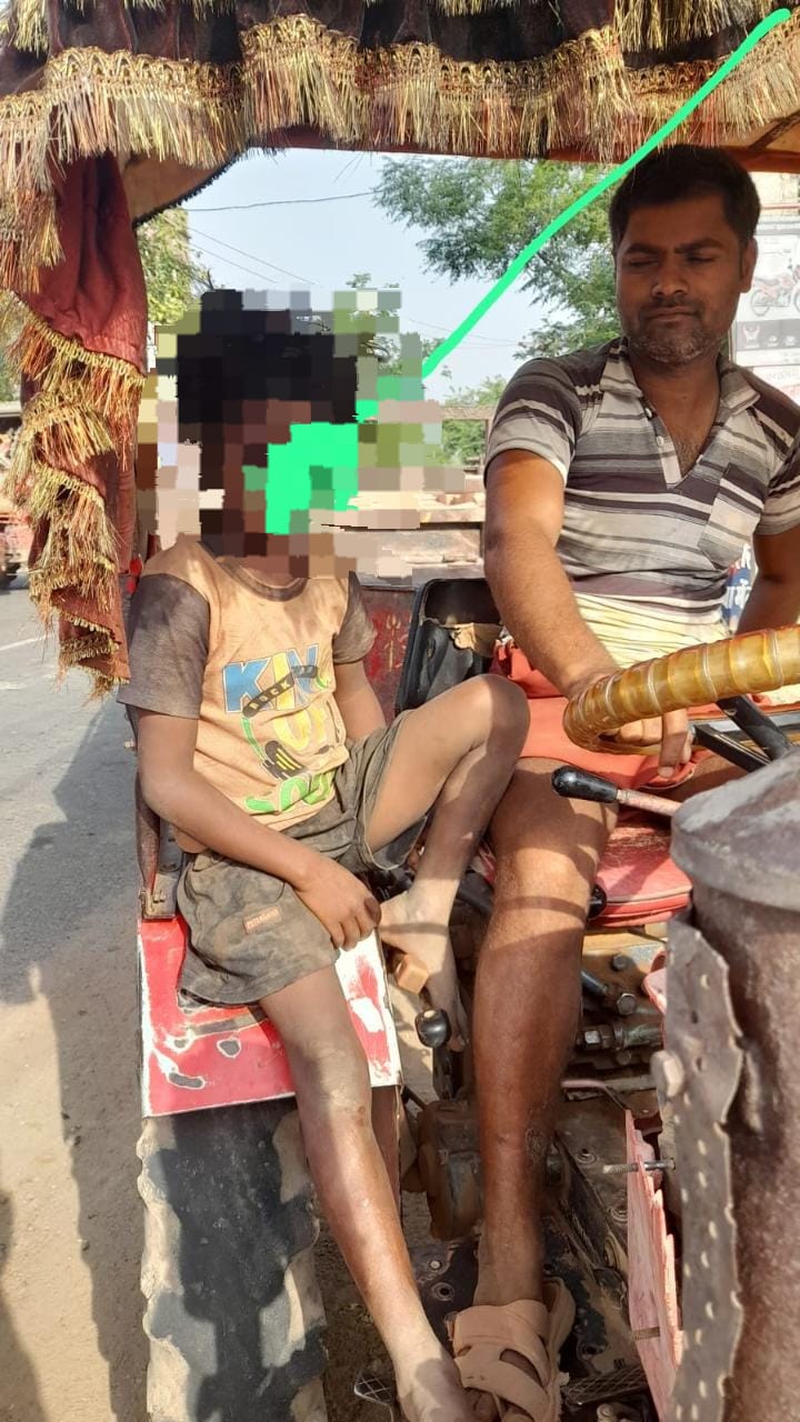 ईंट-भट्ठा पर पकड़े गए एक बाल मजदूर को जबरदस्ती छुड़ाया