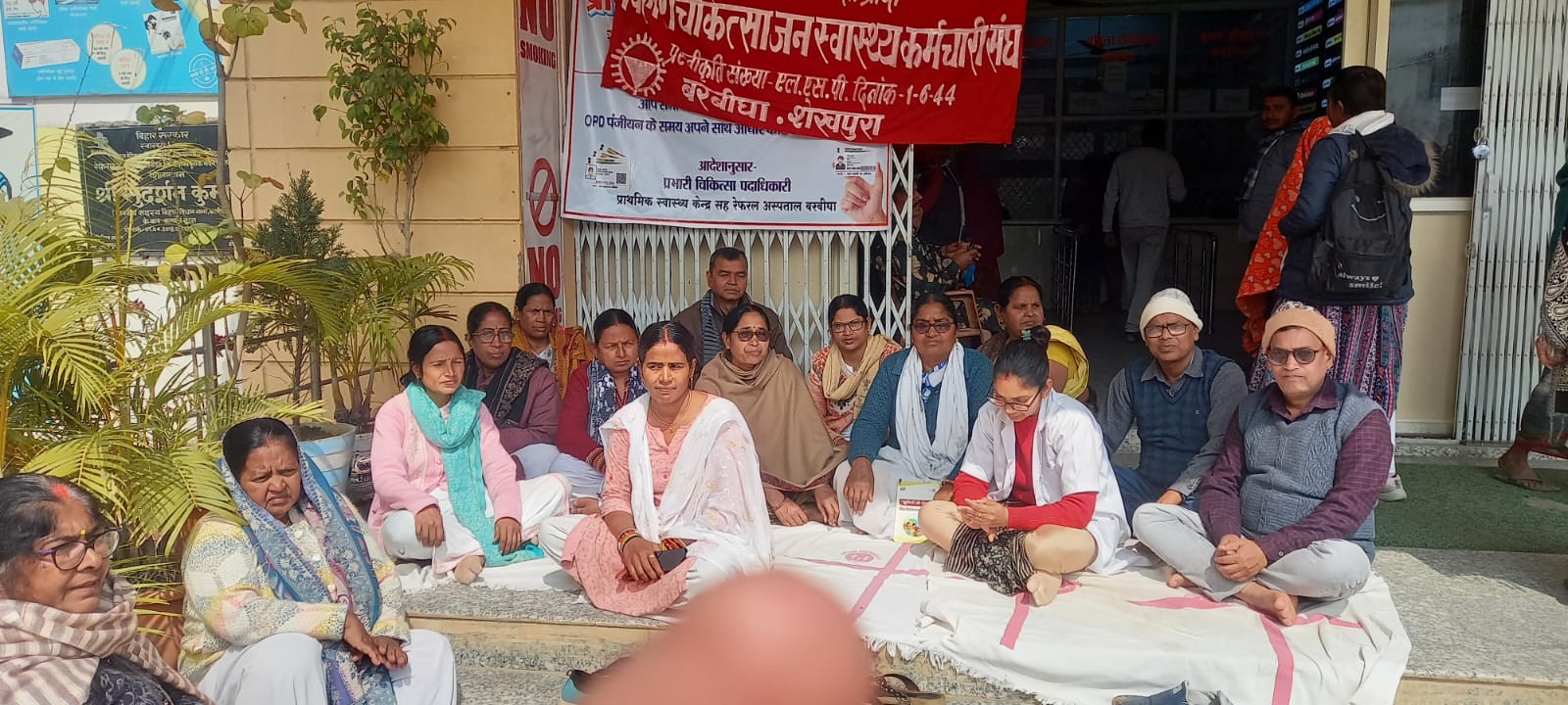 शुक्रवार को शेखपुरा के समाहरणालय गेट के पास सरकारी कर्मचारियों के द्वारा धरना दिया गया है। इसमें स्वास्थ्य विभाग के कर्मचारियों के साथ-साथ कई अन्य विभागों के कर्मचारी भी शामिल रहे । प्रखंड के भी विभिन्न सरकारी कार्यालय के आगे भी इस तरह की धरना का आयोजन किया गया।