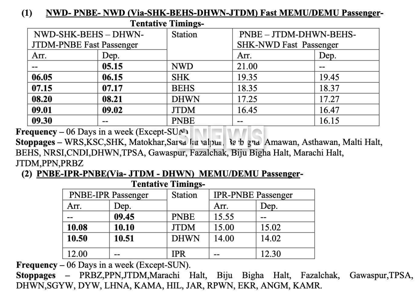 नई पैसेंजर रेलगाड़ी नवादा से सुबह 5:15 में खुलेगी और शेखपुरा, बरबीघा होते हुए 9:30 पर पटना पहुंचेगी।