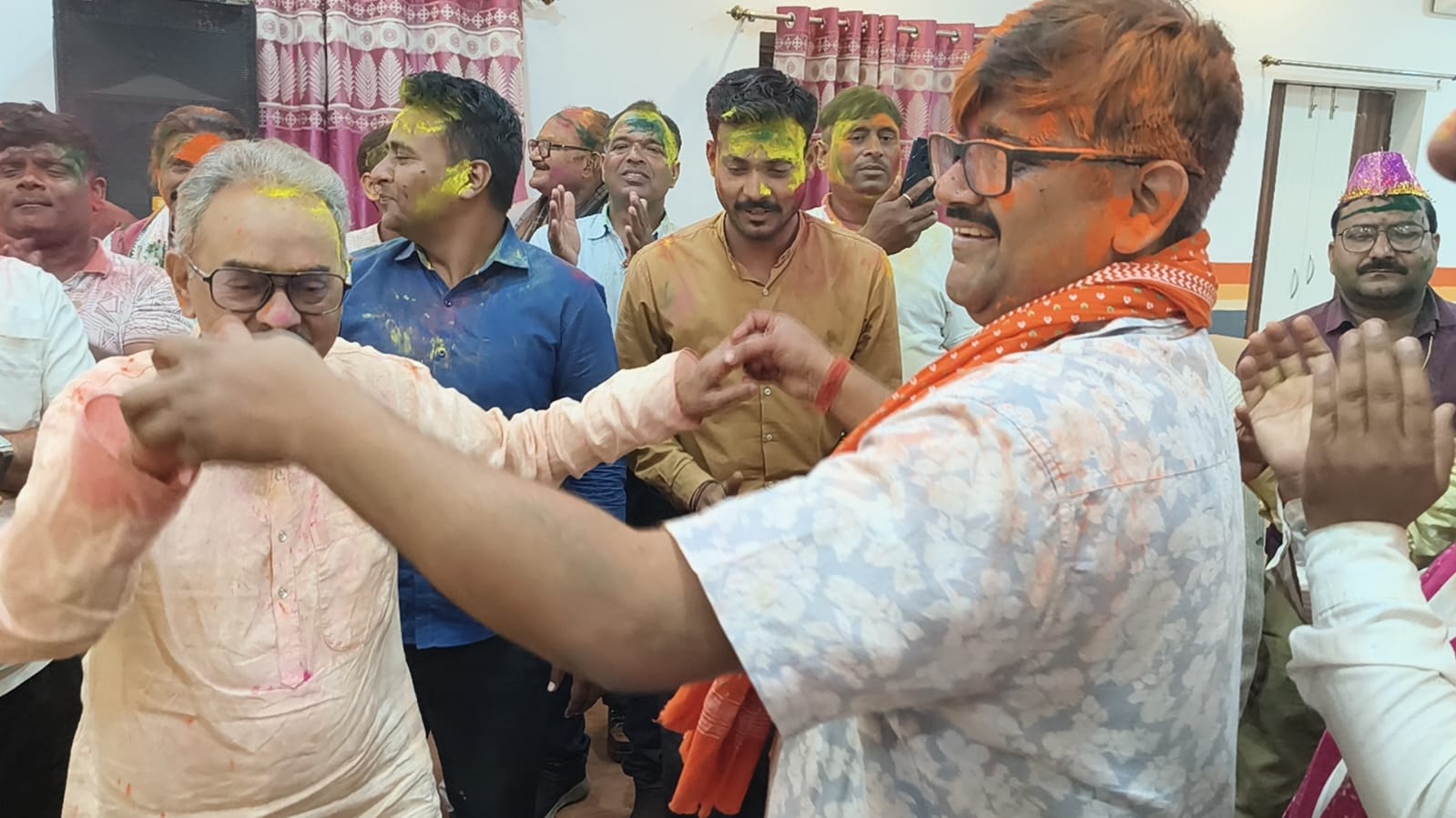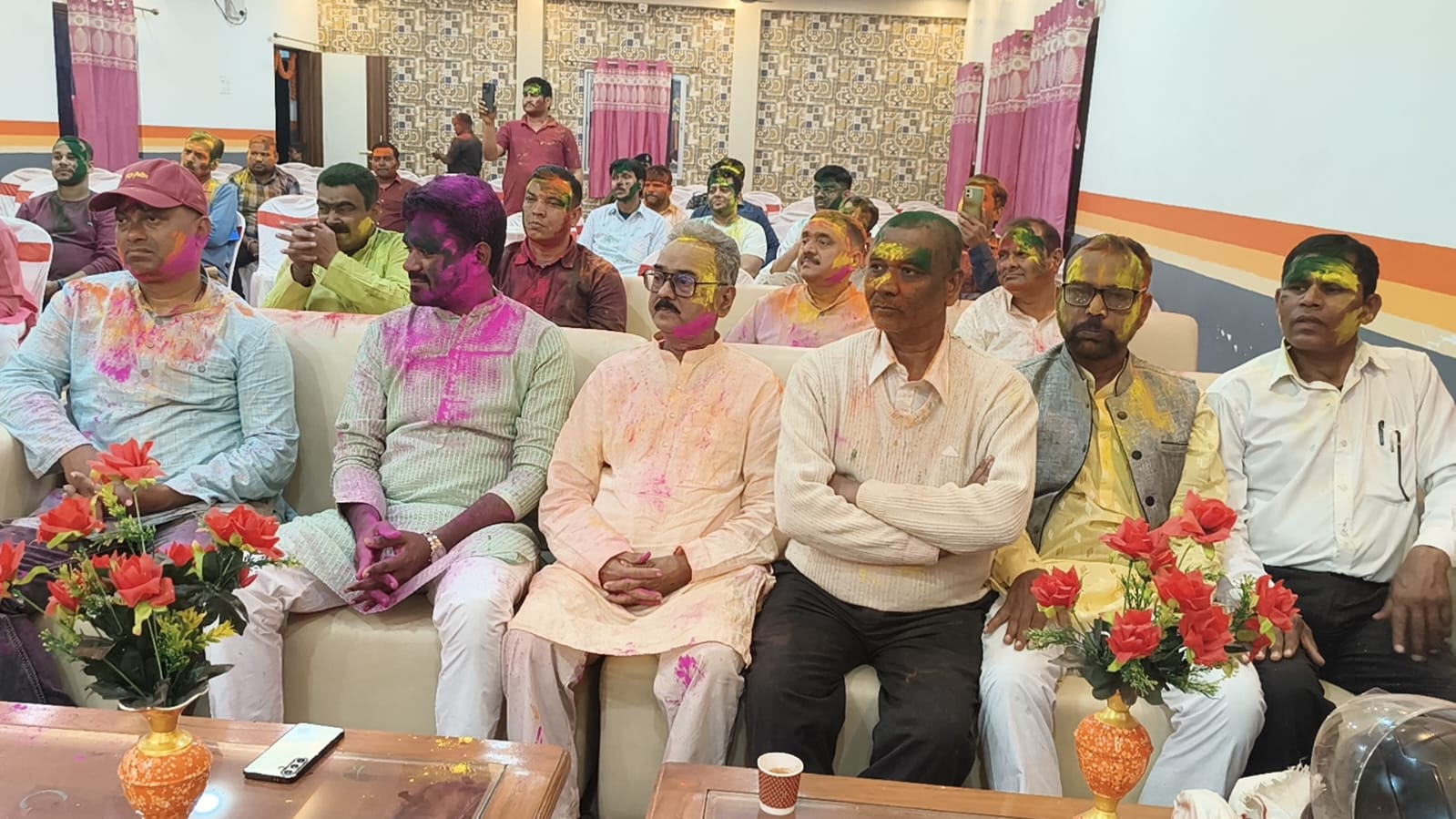 जबकि आदर्श विद्या भारती के प्राचार्य संजीव कुमार ने काली चुनरी में यमुना लहर मारे, पारंपरिक होली गीत का गायन किया।