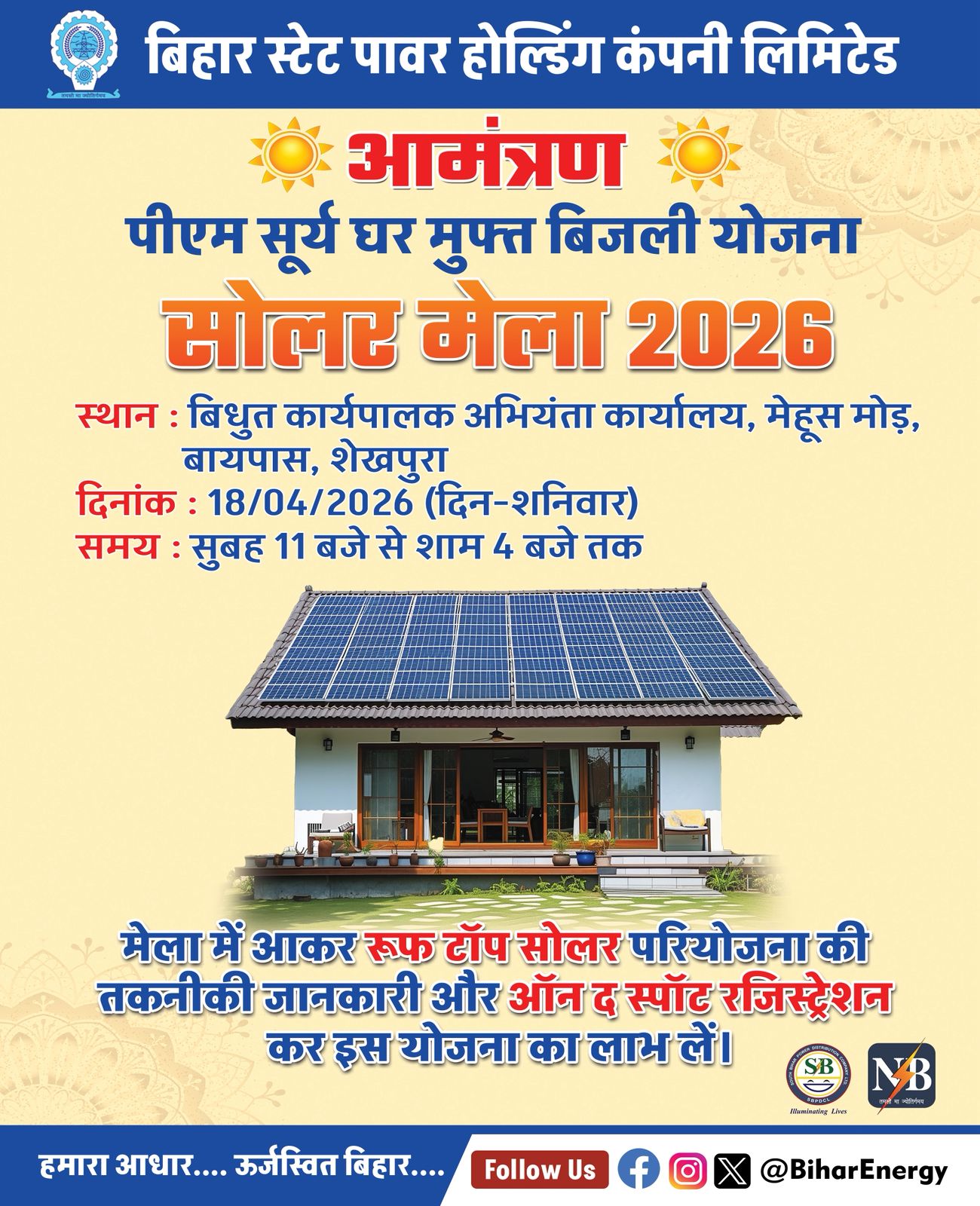 प्रधानमंत्री सूर्यघर मुफ्त बिजली योजना को बढ़ावा: शेखपुरा में विशेष शिविर 18 अप्रैल को, मॉडल सोलर गांव की पहल