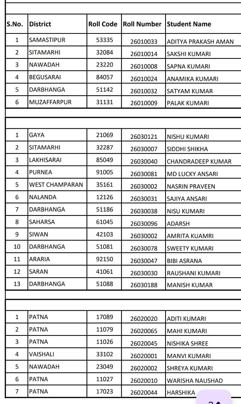 बोर्ड द्वारा जारी टॉप-5 सूची में समस्तीपुर, सीतामढ़ी, नवादा, बेगूसराय, दरभंगा, मुजफ्फरपुर, गया, पटना और वैशाली सहित कई जिलों के छात्र-छात्राओं ने शानदार प्रदर्शन किया है।