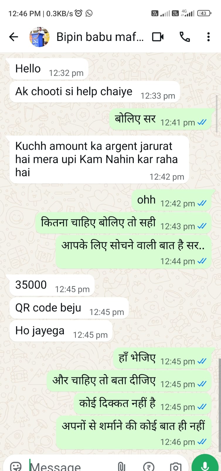 सबसे पहले उनके अपने बैंक खाता से 41000 मोबाइल हैक करने वालों ने निकाल लिया। उसके बाद कई लोगों को व्हाट्सएप से संदेश भेज कर पैसे की मांग की।