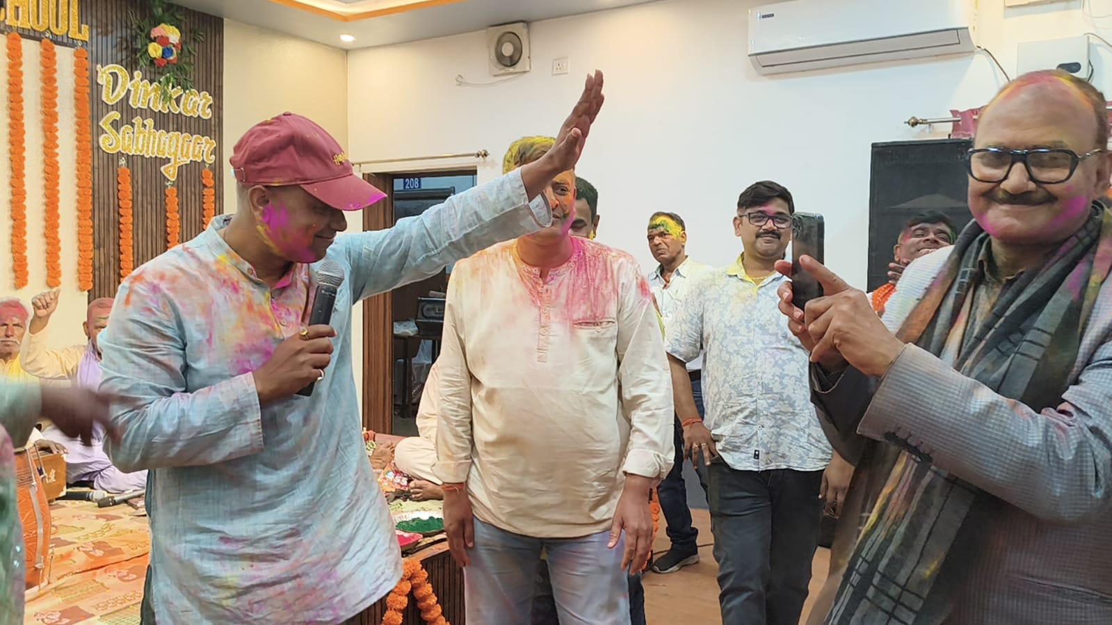 जबकि आदर्श विद्या भारती के प्राचार्य संजीव कुमार ने काली चुनरी में यमुना लहर मारे, पारंपरिक होली गीत का गायन किया।