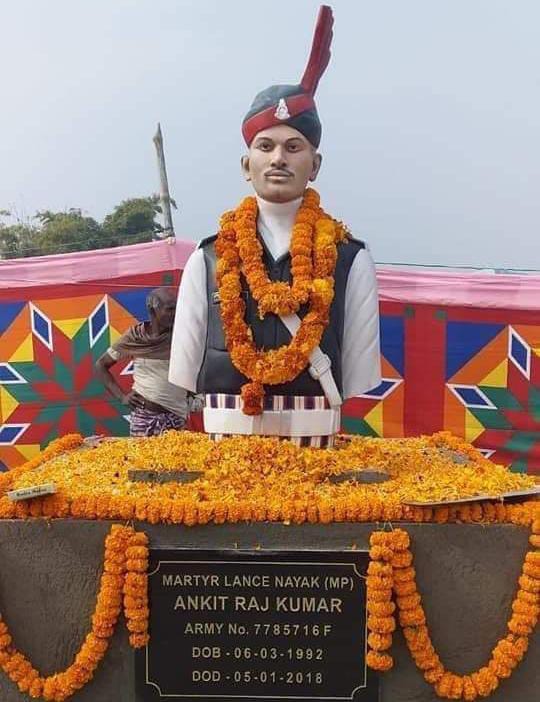 इस मौके पर कई लोग जुटे। जिले के निवासी अंकित राज की शहादत कश्मीर में हो गई थी। 5 जनवरी 2018 को कश्मीर में ड्यूटी करते हुए कर्म पथ पर वे शहीद हुए थे। बर्फबारी की चपेट में आने से उनका बलिदान हुआ था। वही उनके परिवार के लोगों के द्वारा गांव में उनकी प्रतिमा बनाई गई है। प्रतिमा स्थल पर लोजपा अल्पसंख्यक प्रकोष्ठ के जिला अध्यक्ष इमाम गजाली, थाना अध्यक्ष एवं अन्य अधिकारी पहुंचे और पुष्पांजलि अर्पित कर उन्हें श्रद्धांजलि दी।