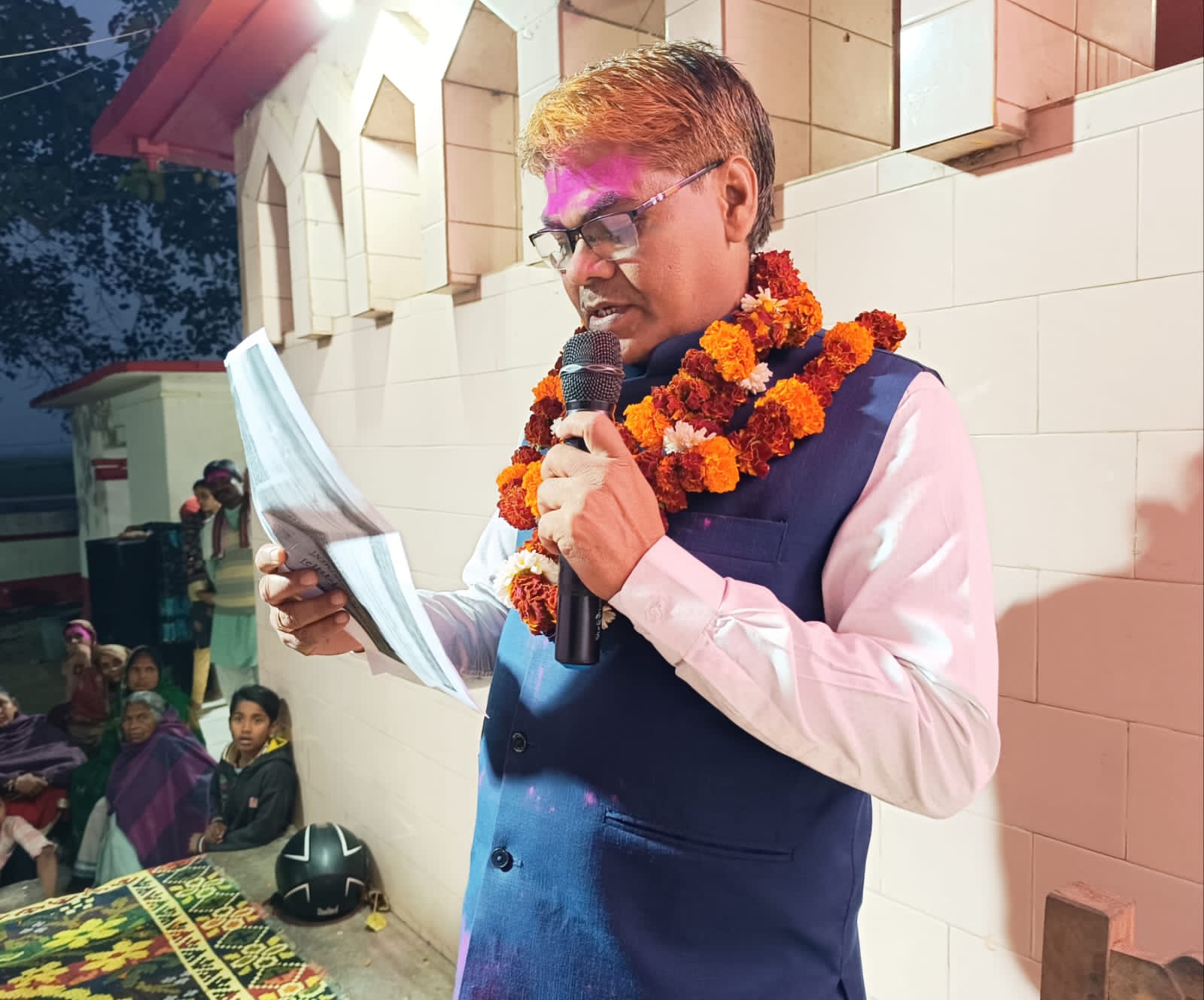 शेखपुरा नगर परिषद के कार्यपालक पदाधिकारी डॉ जनार्दन प्रसाद ने अपनी कविता कोई कहे एन्ने चलो, कोई कहे ओन्ने चलो का पाठ किया।
