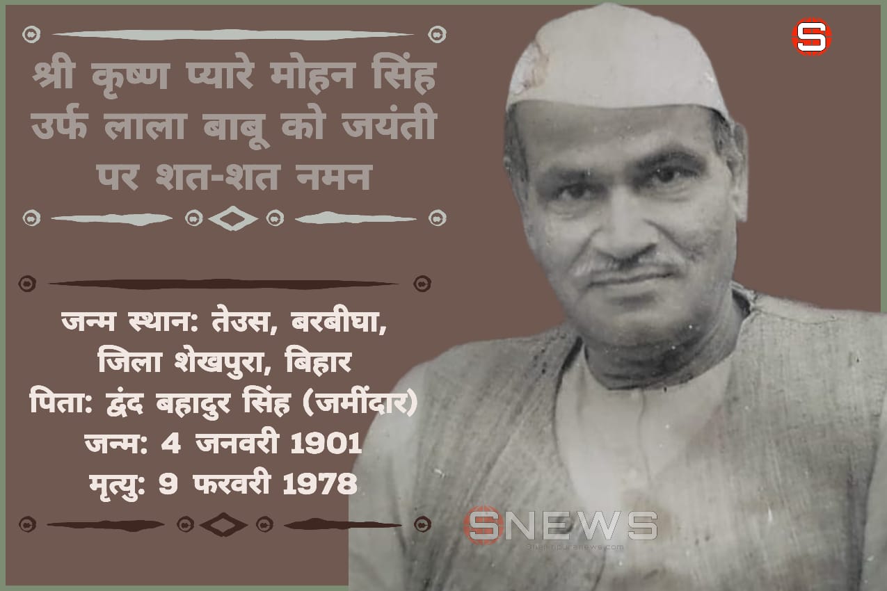 लाला बाबू ने 1911 में बीएन कॉलेजिएट हाई स्कूल से मैट्रिक पास की फिर महात्मा गांधी के आह्वान पर स्वतंत्रता आंदोलन में कूद गए । 1928 में बीएन कॉलेज से पुन: वकालत की पढ़ाई प्रारंभ की। 1933 में जिला परिषद के सदस्य बने। 1948 में जिला परिषद के उपाध्यक्ष बने। 1952 से 57 तक बरबीघा के विधायक रहे। 1957 से 58 तक लगभग 1 वर्ष राज्यसभा के सदस्य रहे। 1958 से 12 वर्षों तक लगातार बिहार विधान परिषद के सदस्य रहे।